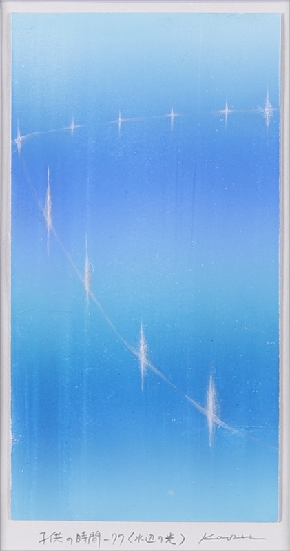 24 子供の時間ー77 <水辺の光> 厚紙にスクラッチ、油彩 190×100mm