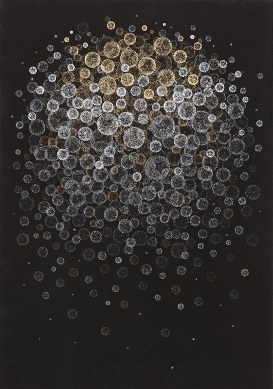 1 あふれるひかりをあげるよ SM 22.7x15.8 cm 木製パネル、雲肌麻紙、松煙、岩絵の具、膠 2017