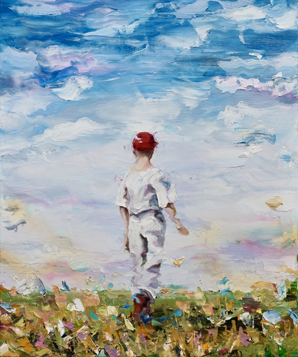 14 赤い帽子の誘い キャンバスに油彩 F8 45.5x38.0 cm 2021