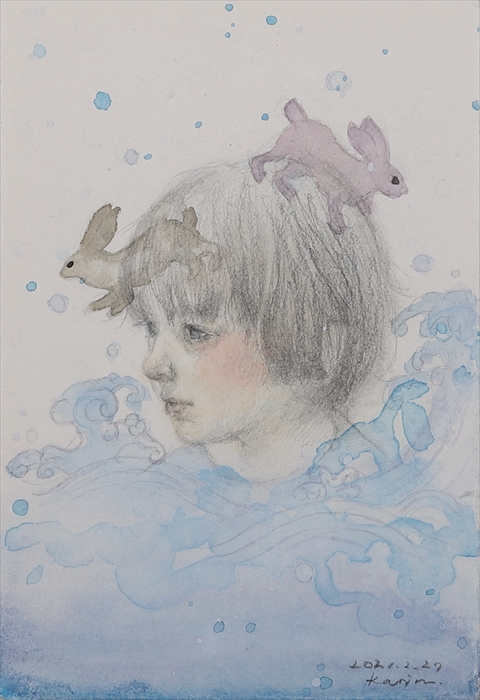 20 Daily drawing -wave and rabbit- aɉMA 14.8x10 cm 2021 z