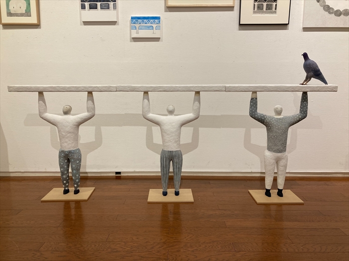 15 高架橋の幻覚(柱さん) 木材石粉粘土アクリルガッシュ 和紙 h.76 x w.70cm台座サイズ22.5x30 cm