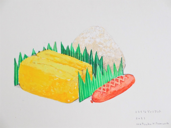 17 すてきなディスタンス パネル紙アクリルガッシュ水彩鉛筆 14.9x21 cm