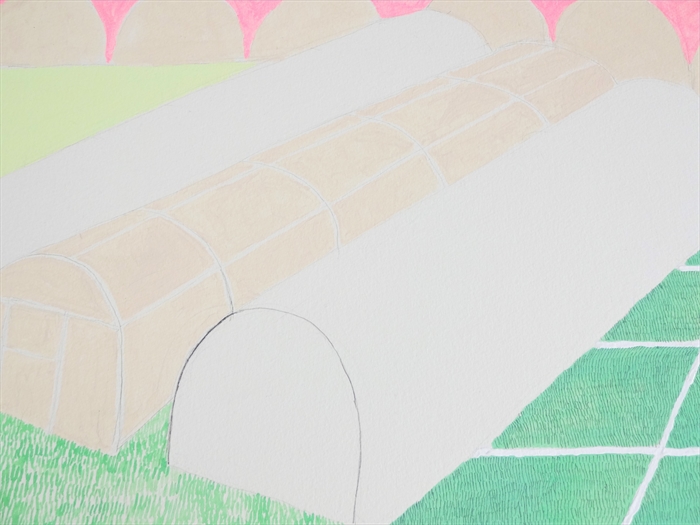 18 ビニルハウス パネル紙アクリルガッシュ水彩鉛筆 24x33.5 cm