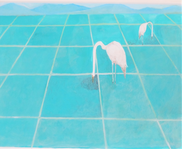 39 田んぼにサギ 紙鉛筆水彩アクリルガッシュ 36.5x44 cm(額サイズ)