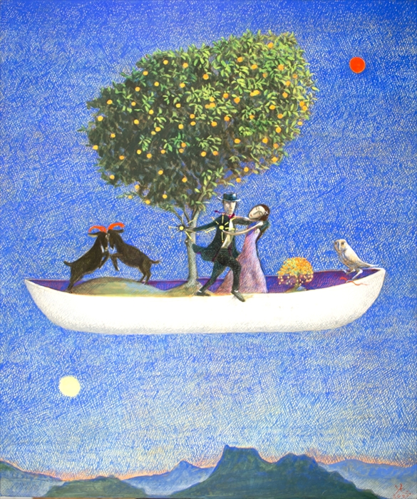 13 空舟(ソラフネ) パネルに綿布をマウント/テンペラ、油彩 F20 72.7x50p 2021