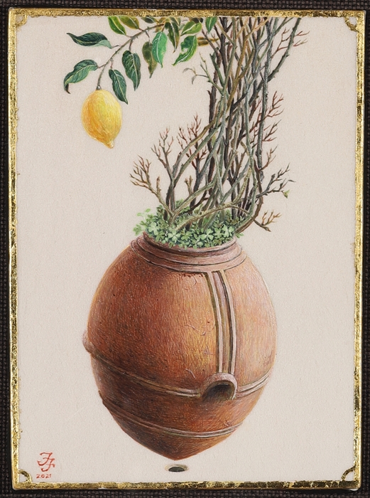 16 蘇生の壺U 卵テンペラ・羊皮紙・金箔 14.0x10.5 cm 2021