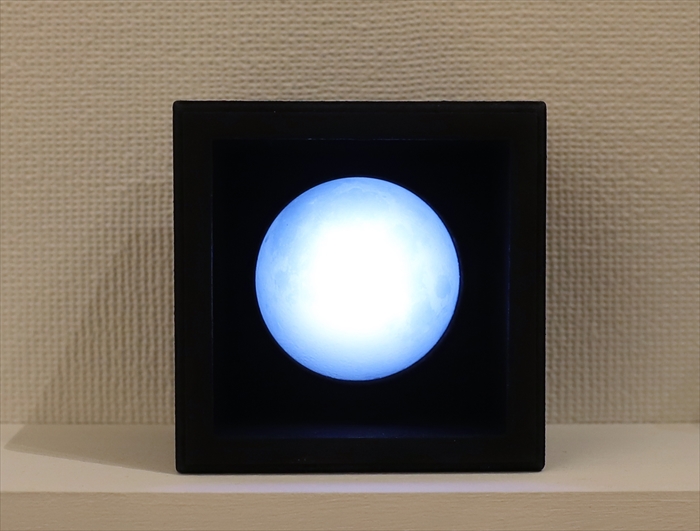 14 時の流れを月で知る 00 木材、樹脂、電気部品、他 9.7x9.7x6.5 cm 2022