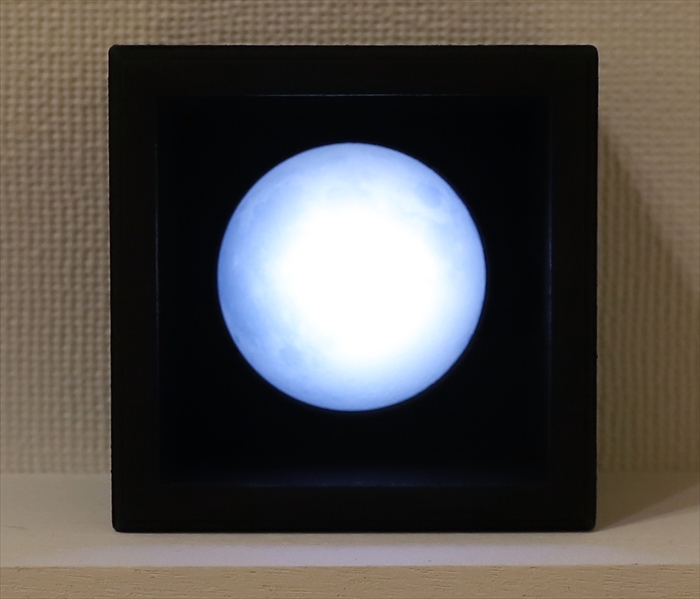 26 時の流れを月で知る 012 木材、樹脂、電気部品、他 9.7x9.7x6.5 cm 2022