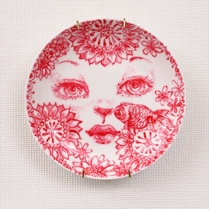 19 ドローイング絵皿 No.1 絵皿、専用絵具、焼付 14.9x14.9x2.1 cm 2022