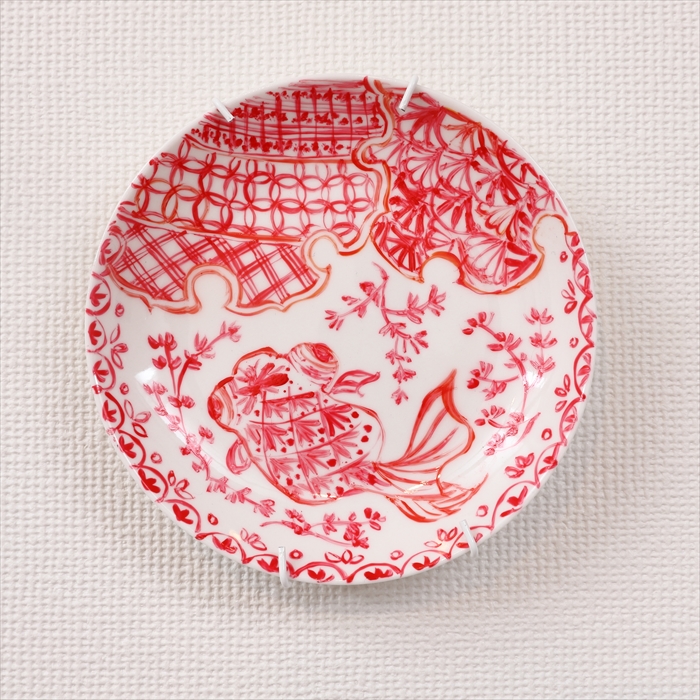 23 ドローイング絵皿 No.5 絵皿、専用絵具、焼付 12.3x12.3x1.7 cm 2022