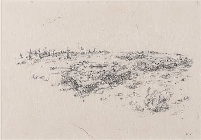 21 結末 ドローイング 山中和紙, ペン A4 21x 29.7 cm 2023