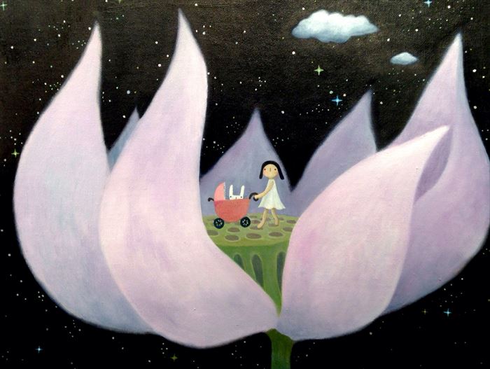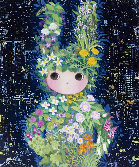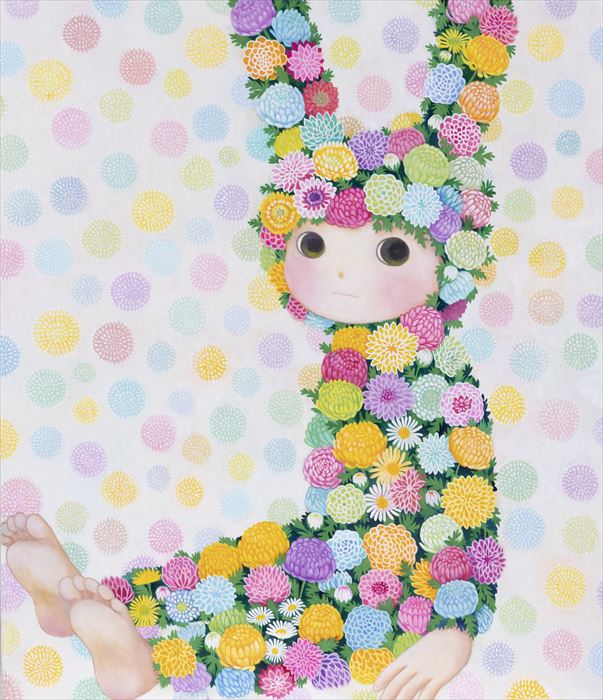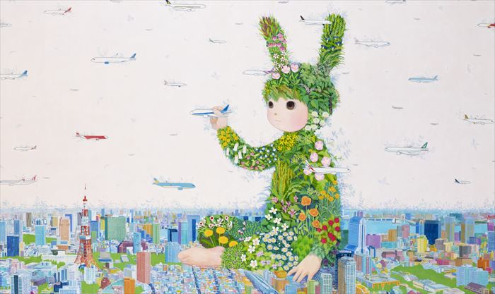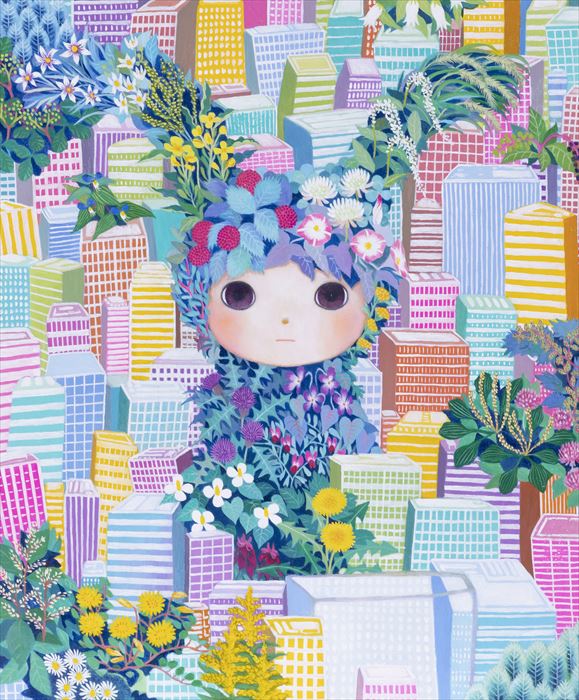 While her work may appear cute at first glance, Go contemplates and reflects on her experiences in life, creating works with contemporary themes and messages that resonate with reality. As a third-generation Korean living in Japan, her participation in KIAF 2004 Special Exhibition Contemporary Japanese Art prompted her to contemplate her own identity. Subsequently, she began incorporating rabbits, which are said to resemble the Korean Peninsula in shape, into her artwork. In her early works, she explored the theme of ‘self and others’, depicting figures such as girls representing herself and rabbits representing others. She expressed the quest for identity through her paintings. Her expression later shifted from ‘the relationship between self and others’ to ‘the form of that relationship, what is shared and what is not’. Now, having gone through parenthood, she paints weeds and cities as metaphors for children and adults. In contrast to the planned cities, she portrays weeds that grow freely in all directions as a character named ‘Mr.and Ms.Weed’, expressing her desire to see the world once again through the perspective of Mr. and Ms. Weed's mindset as an adult.
