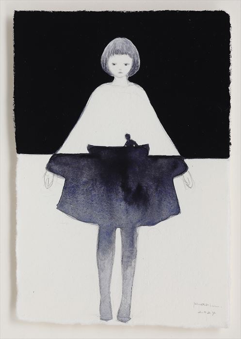 和紙に墨、アクリル