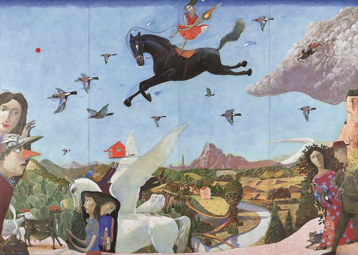 1 幻視−どどめき舌状台地 アルキド樹脂によるテンペラ、油彩、パネル 250x350 cm 2024