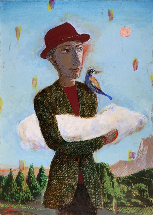 11 雲を抱く アルキド樹脂によるテンペラ、油彩、パネル 34x24.5 cm 2024