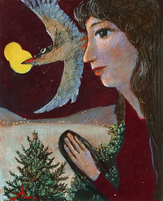 14 渡り…月夜に アルキド樹脂によるテンペラ、油彩、パネル F0 18x14 cm 2023