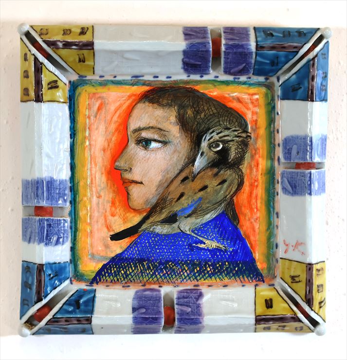 18 彼方 アルキド樹脂によるテンペラ、油彩、磁器工房白象九谷焼 23x35x3 cm 2024