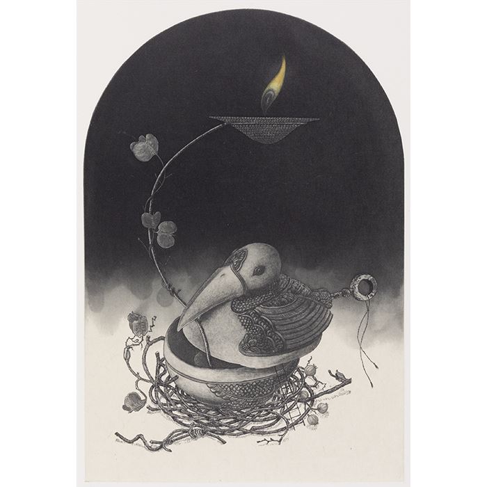 12 銀の鳥 エッチング/アクアチント、手彩色 ED:30 21.7x14.7 cm 2023