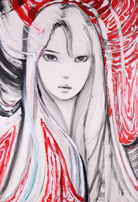2 赤と黒とわたし oil,charcoal,cotton on panel P50 116.7x80.3 cm 2024