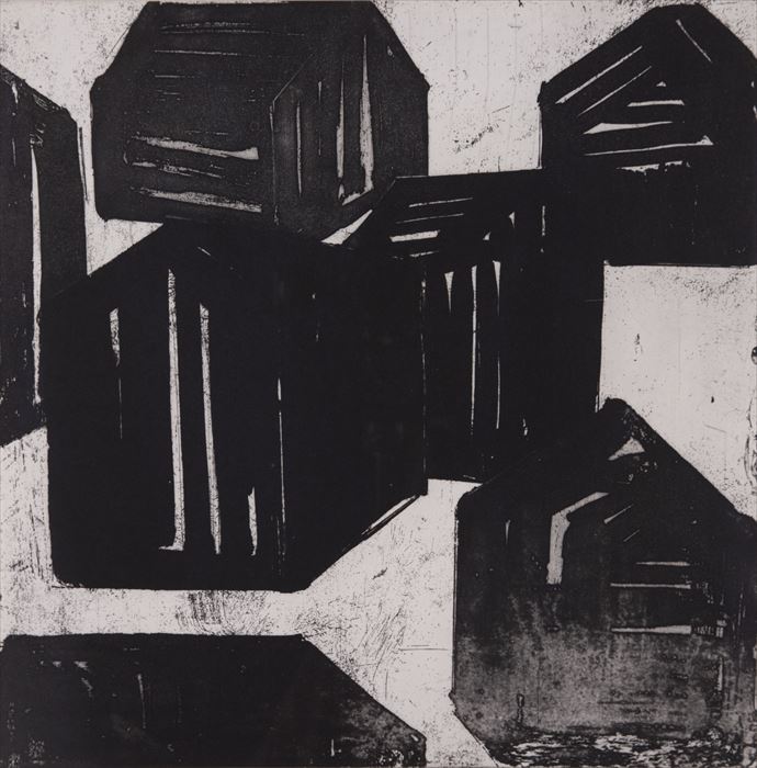 5 Houses 銅版画、ハーネミューレ ED: 20 50x50 cm 2024