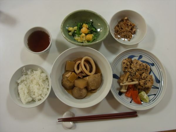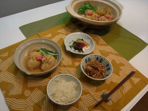 ●3月3日 3年前から男の料理教室に通っていて、フェイスブックでは嬉しそうに毎月紹介させていただいているが、臆面もなくブログでもいくつか紹介させていただく。 我が家や友人には大好評である・・・エヘン!! れんこん茶巾と大根の鍋仕立て・うどのきんぴらと和え物 豚肉と金柑の照煮 イカと里芋の大和煮