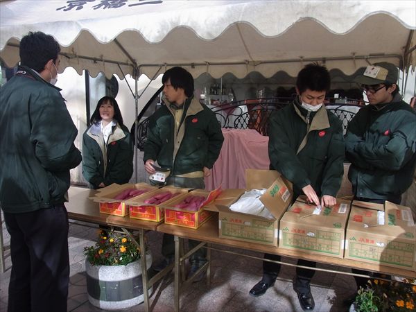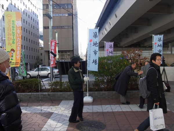 ●3月30日 また寒の戻り。 微かに残った大島桜を眺めながら京橋三丁目の桜を愛でる会が始まった。 まずは画廊の前の通りを大根河岸、反対側を竹河岸と称することになった命名式が行われた。 渡り初めを先の歌舞伎のお練り同様にとび職の木遣りを先頭に神主さん、区長さんたちが続く。 つぎに大根河岸通りをマルシェと銘打って市場として解放し、模擬店が並んだ。 その中に私のところもテントを立てて、綿引明浩によるワークショップを開店。 透明のアクリルに裏から絵を描いてもらうと、表には美しい色が浮かび上がる。 同時に画廊内には綿引作品を並べ、中にも入ってもらおうという趣向だ。 あまりの寒さに思ったほどの人は来なかったが、これをきっかけに大きなイベント化して、この界隈の活性化に繋がることを期待する