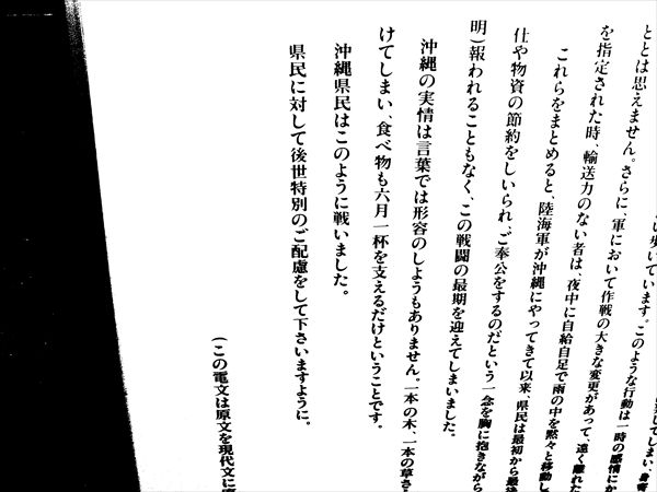 ●2月25日B 山本麻友香の新作版画をフェースブックにて紹介していたが、ブログにて紹介するのをうっかりしていた。 既に到着分の5部は売約となってしまったが、ご希望の方には予約をいただければ多少お時間をいただき、刷り上り次第ご連絡をさせていただく。 銅版画・sleeping・pengiun ・25cm×23.5cm・ ed20 銅版画・bird・33.5cm×29.5cm ・ed20 ●2月25日A 2月23日から3月9日までギャラリー椿で開催される若手作家のグループ展の作品紹介をさせていただく。 内藤亜澄 忘れ物・F6・31.8 x 41.0cm・ 油彩・キャンバス 入口・F6・31.8 x 41.0cm ・油彩・キャンバス ●2月25日 沖縄二日目 早朝から首里城へ。 ここは何度も行っているのだが、琉球王国の栄華を知る上では欠かせないところである。 飛行機もそうだったが、修学旅行生がやけに多い。 領土問題の影響なのか、中国・韓国を避けて沖縄に来る学校がかなり増えてきているそうだ。 守礼門は工事中で見ることができなかったが、正殿をじっくりと見ることができた。 1400年頃に尚国王の居城として以来、明治政府に併合され、城を明け渡すまで、500年の間栄華を誇ったところである。 その後沖縄戦で廃墟となり、1992年に本土復帰20周年を記念して復元されたということで、ここにも沖縄の苦難の歴史が詰まっている。 見学後、ロータリークラブの地区大会会場へ向かう。 約1500名のロータリアンが集まる年1回の行事である。 沖縄地区と東京地区が一緒なのも不思議な気がするが、琉球と薩摩の確執もあって、沖縄は東京の地区に入っていて、これまた歴史的な背景がある。 仲井真知事の簡単な挨拶があった他は、長々と形式的な行事ばかりで、退屈この上ない。 橋下市長の記事で話題になった佐野眞一氏の講演も自分の本の自慢ばかりで中身が全くない。 「沖縄・誰にも書かれたくなかった戦後史」という本を書いたことで呼ばれたのだろうが、週刊朝日の記事で非難を浴びた件の話でもしてもらったほうが余程ましだったかもしれない。 その後のシンポジウムに登場した若い留学生の話のほうが傾聴に値する話で、今の若い子の将来を見据えた考え方に感心させられた。 ●2月24日 沖縄一日目B 夜は八重山料理へ。 八重山とは石垣島などの沖縄本島から遠く離れた島々のことで、豆腐や野菜を使ったヘルシーな料理で、高台の住宅地にひっそりとある隠れ家のような小さなお店だ。 同行した知人が稲嶺元県知事を食事の席に招き、知事を囲んでの食事会となった。 稲嶺元県知事には、沖縄の現状や県民の考え、将来への展望など、沖縄の歴史を紐解きながら、大変興味深いお話をしていただいた。 琉球王朝時代の明・清、薩摩による従属、明治政府による日本併合、戦場と化した太平洋戦争、米国の占領、返還後の基地問題と常に苦渋を強いられてきた歴史的背景を知った上で、今の沖縄、未来の沖縄に本土の人達は思いを馳せて欲しいと語った。 鳩山由紀夫元総理の発言に対して、本土の人達はとんでもないことを言って沖縄を怒らせたと思っているが、沖縄ではよくぞ言ってくれた、この発言で保守も革新も一体となって基地移設反対を強く主張するようになったのだと。 なんとも皮肉な結果になったものである。 基地移設が何故辺野古なのか、本土への選択肢はないのか、オール沖縄ではなくオール日本の問題として捉えて欲しいと言われた。 私達本土の人間にとっては真正面から取り組まなくてはいけない問題である。 ●2月23日A 今日からギャラリー椿で開催される若手作家のグループ展の作品紹介をさせていただく。 浅井飛人 鎧・55 x 32 x 14.5cm・鉄、真鍮、木、彩色 矛盾の存在・H137.0 x 48.0 x 33.0cm・鉄、真鍮、アルミニウム、ステンレス、ライト、ゴム、彩色 睨む犬・45 x 14 x 17cm・鉄、真鍮、木、樹脂、彩色 岩田ゆとり cow・F10・45.5 x 53.0cm ・油彩・キャンバス untitled・S12・60.6 x 60.6cm・油彩・キャンバス 私の影・P50 116.7 x 80.3cm・油彩・キャンバス キムソヒ sandwich・F10・45.5 x 53.0cm・油彩・キャンバス sandwich・F10・45.5 x 53.0cm・油彩・キャンバス 渡辺大祐 UNIFORM CONCEPT・9.0 x 34.5cm・ED.10・Cプリント UNIFORM CONCEPT・34.5 x 23.0cm・ED.10・Cプリント 中村萌 Stairs to hole・27 x 28 x 35.5cm・石塑粘土・油彩 grew darkness・65 x 41 x 52cm・楠木・石塑粘土・油彩 ●2月23日 沖縄一日目A 海軍壕を後にして、世界遺産のひとつになっている庭園・識名園を訪ねた。 ここで偶然目にしたのが豪華な宮廷料理で、琉球王国が中国の使者を歓待するのに振る舞われた宴席料理で御冠船料理という。 伝えられるレシピがないため、古い文献を読み解き、長い年月をかけて再現して、丁度今日がその御披露目だそうで、食べることは出来なかったがその料理を間近に見ることができた。 ただ彩りが原色過ぎて、あまり美味しそうには見えないのだが。 ●2月22日A 2月23日からギャラリー椿で開催される若手作家のグループ展の作品紹介をさせていただく。 岩渕華林 春の風・M50・116.7 x 72.7cm・ 墨、アクリル絵具、和紙 drink my tears