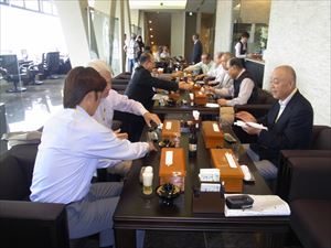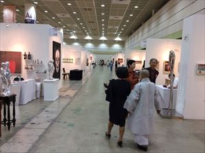私も手伝おうと思ったが、かえって邪魔をしてしまうのではと途中で引き上げることにして、次に向かったのは宮殿・景福宮の近くにある画廊・A−CUBE。 ここで、私もよく知っている大阪の坪田政彦個展のオープニングが開かれる。 ここの女性オーナーは、先日戸村美術の息子さんと結婚したばかりの女性なのだが、これまたパワフルな女性で、フェアー終わった早々の個展である。 日本からもよく知っている画廊さんや作家さんが来ていて賑わっていた。 ここも頃合いを見て引き上げ、夕食を招待されているSPギャラリーに向かい、ご主人、お嬢さんとともに美味しい韓国料理をご馳走になった。 最初に山芋を細く切って海苔でまぶしたのが出てきて、韓国で初めて山芋を食べたが、韓国には海苔巻き、納豆や豆腐、うなぎやどじょうといった日本と同じ料理がたくさんある。 違うのは辛いか辛くないかである。 そんなわけで、私も一日忙しくしていて、のんびりとマッサージでもというわけにはいかなかった。 明日は帰国だが、帰るとまた仕事が山積み、それを片付けて8日からは北京に一人で出かけることになっているが、WOOやA−CUBEのように若くないので、果たして身体が持つだろうか。 ●9月29日 最終日の朝は雨。 昨日の賑わいが嘘のように静かな一日となった。 幸いなことに、昨日も書いたが、韓国の画廊さんの頑張りで、山本麻友香の大作がそれぞれで売約となり、私自身は何の役にも立たずに、結果だけは14回のKIAFの中では最高の売上となった。 長い間、継続して韓国で山本麻友香を紹介してきた成果が出たことは間違いない。 全体的には韓国経済の低迷もあって、フェアー自体は低調だったようだが、それでも矮小化してしまった日本のアート市場に比べると、韓国のアート市場の規模は大きく、富裕層の購買意欲はまだまだ衰えていないように感じた。 名刺交換をさせていただいても、殆どが企業経営者で、バブル崩壊後の日本の企業経営者とは大きな違いがあるようだ。 それとは別に感じたことだが、フェアーだけではなく、ホテルやレストランでも、反日感情はどうなってしまったのだろうと思うくらいに、私たち日本人に対して手厚く接してくれることである。 メディアで報じられるようなことは全くなく、逆にこれほど厚くもてなしてくれることにただただ恐縮するばかりであった。 政治にはあっても文化には壁がないことを肌で感じさせてもらった。 来週から出かける北京でも同じようにあって欲しいと願っている。 韓国画廊協会の会長から、来年イギリスで、日中韓各25名の若手作家による東アジア現代美術展を計画しているので、ぜひ協力して欲しいと頼まれ、その選定の協力をすることになった。 また、台湾の画廊協会の呼びかけで、台北のアートフェアーの折に、アジア全体の画廊協会の設立を目指す会議が開かれ、私を含め3名が日本側の画廊協会の代表として出席することになっている。 このように、アジア美術の振興と市場の活性化に向けて、アジアの画廊が大きく動き出している。 KIAFも今年は東南アジアの画廊を多数招待していて、私も親しくしているインドネシアの画廊協会の会長と旧交を温めることができた。 この画廊では、来月から浅井飛人、牧野永美子を含めた30周年記念展が開催されることになっている。 このように、今や各国はグローバルな視点で将来を見据えており、我が国のドメスティックなアートフェアーもそうだが、日本だけがいまひとつ出遅れている感を免れない。 アジアは一つ、今回のフェアーで得た一番大きな収穫ではないだろうか。 ●9月28日 日曜日になってようやく大勢の人が詰めかけ、アートフェアーらしくなった。 私のところを含め売上も伸びてきたようだ。 日本からの視察の画廊さんも次々にやって来て、昨日までとは打って変わって大賑わいである。 夜は海外からの出展画廊のウエルカムパーティーがあったが、大邱の画廊さんからの招待と重なり、そちらに向かうことにした。 なんと昨日と同じ豚カルビ。 それでも今日の豚カルビは格別で、ついつい食べ過ぎてしまう。 これから北京、台北、シンガポールとそれぞれ美味しい料理が待っていて、来る前にやっていたダイエットは何の意味もなくなった。 明日は最終日、持って帰る作品がなくなり、船便のための梱包をしなくて済めばいいのだが。 ●9月27日A 土曜日とはいえ人出は少ない。 例年ならブース内が人でごったがえすのだが、パラパラッといった感じで、甚だ心細い。 韓国経済の低迷が大きく影響しているのだろうが、それに加えて、私のブースが端っこにあることも影響しているのだろうか。 いつもなら、長年参加している貢献度もあって、真ん中の大手画廊が並ぶエリアに配置されていたのだが、その効力も薄れてきたようだ。 AゾーンとBゾーンに会場が分かれていて、人の流れがあるAゾーンにあるだけ良しとしなくてはいけないのかも。 そんなこともあって、成果
