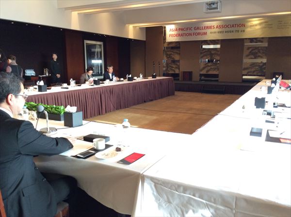 ●1月15日 昨日の遅くにソウルから戻ってきた。 疲れもそれほどなく、元気で帰ってきたつもりだったが 、夜中に我慢できない腹痛が襲ってきた。 トイレに何度も駆け込むうちに、今度は気持ちが悪くなり嘔吐を繰り返す。 偉いことになったなと思いつつ、今日はお客様が見たいと言っている作品があり、休むわけにもいかず、ふらふらになりながら画廊に向かう。 原因が分からず、冷えと疲れから来たのかもしれないが、画廊では次々に来客があり、痛いだ気持ち悪いだ言ってられない。 偶々お客さんと話していて、牡蠣が中るとひどいんですよねという話になり思い出した。 13日に生牡蠣をいくつか食べたのである。 すぐに痛くならなかったのですっかり忘れていたが、なるほどそれに違いない。 それでも痛いのを我慢して出てきた甲斐があり、一人のお客さんに3点の作品を買っていただいた。 休まず働けということで、明日は日版商の会があって、出席するつもりでいる。 ●1月13日 朝10時からアジア画廊協会会議が始まった。 台北の会議同様に8ヶ国の代表が集まった。 ただ会議は踊るの言葉通り、台湾と同じような議論に終始し、役員の選任も決まらず、結局は協会の名前がASIA-PACIFIC GALLERY ASSOCIATION FEDERATION、略してAPGAFとなっただけである。 役員の選任については、昼食、夕食の時にも議論が続けられたが、結局は決まらず、来たる3月の香港アートステージの折にもう一度集まり、投票によって決めることになり、その任期もその時に決めることになった。 私は語学力のなさが災いして、あまり意見も言うことができず、次回の日本での会議開催もオリンピックイヤーのアジアンアートフェアーの日本開催もうやむやに終わってしまい、自分の不甲斐なさを嘆くのであった。 ただあまりに不毛な会議は時間とお金の無駄であり、唯一の成果は8ヶ国の代表の結束が固まったくらいである。 ただこれもそれぞれの代表が任期終了とともに交代することで、こうして深まった人間関係も次に繋がるかどうかが問題となる。 2ヶ月後に香港にまた行かなくてはならず、今度は優秀な通訳を連れて行くのがわたしにとっての重要な任務となるだろう。