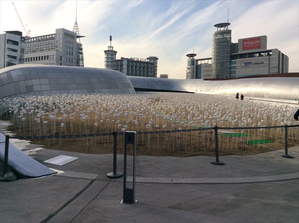 昼食後、韓国画廊協会の役員たちに案内されて、新しく出来たデザインミュージアムDDPと国立現代美術館に行ってきた。 東大門近くにあるDDPはとてつもなく大きい建物で、コレクションは大したことないが、その規模の大きさにはただただ呆れてしまう。 興味を引いいたのはアートグッズショップで、お土産にしたいようなおしゃれなグッズがたくさんあったが、時間がなくチラ見しただけで終わってしまった。 ここには是非次回に訪れたいと思う。 次に行った現代美術館も幾つかの企画があったが、それほど関心を引くものはなく、何度か行ったサムソンがやっているリウムミュージアムのコレクションの方が企画、コレクションともに質が高いようだ。