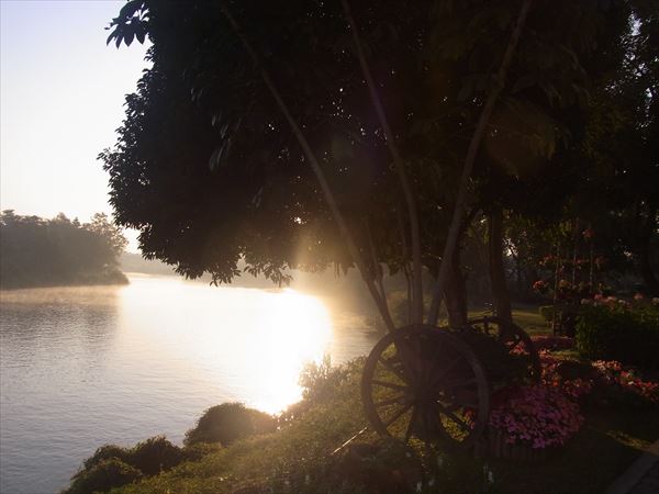 日本時間ではすでに真夜中、明日も早いということで、すぐにベッドでバタンキュー。 1月28日 翌朝はホテルのレストランの横を流れる川からの夜明けの風景が美しい。 すっかり記憶から消えていたホテルだったが、この夜明けの風景を見て思い出した。