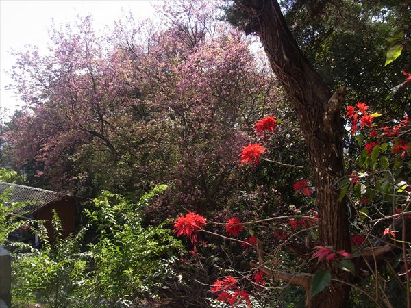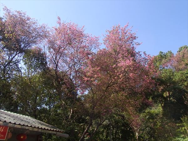 今日は早くからまずはチェンライから更に高地にあるタイの桜を見に行く。 予定では、象に乗って川下りをする予定だったが、急遽変更になって、お花見となり、楽しみにしていた私はちょっとガッカリ。 2時間ほどバスで山を上がって行くと、小さなバザールが出現。 ここはかなり山の上だが、中国人とどういうわけか台湾の人たちが、山岳民族とともに住み着いている。 国民党の残党だそうだ。 この地域はケシの栽培を密かにしていて、麻薬取引が行われているそうで、その摘発のために途中に警官が検問をしている。 桜は12月が盛りだそうで、パラパラとあるだけで、日本の桜のことを思うと、拍子抜け。 それにしてもまさかタイで桜を見るとは思わなかった。