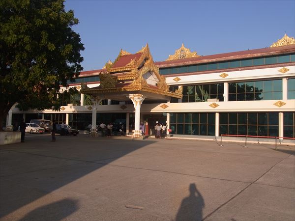 アウンサンスーチン邸を見学した後(といっても外からだけだが)、湖畔のレストランで飲茶茶を食べて、国内線でヤンゴンからバガンに向かう。 バガン飛行場は写真のような小さな飛行場で、田舎の停車場といったらいいだろうか。