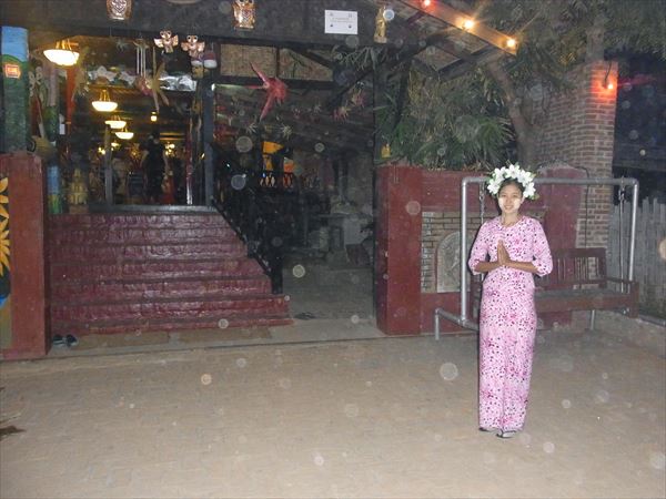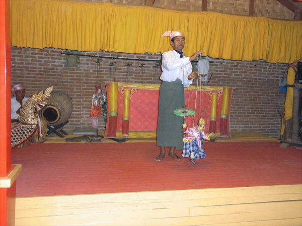 バガンは世界三大仏教遺跡と称されるアジア最大の仏教遺跡群で知られる都市である。 見渡す限り乾燥した大地に2000にも及ぶ仏塔(パゴダ)が点在し、その荘厳さに圧倒される。 11世紀から12世紀ににかけて造られたそうだが、当時はその数は数十万にも及んだと言われている。 パガンのホテルはリゾート風の素敵なホテルで、こんな所にこんなお洒落なホテルがあるとは夢にも思わなかった。 そこから近くにあるレストランでミャンマー料理を味わうことに。 ミャンマー料理はタイ料理より辛いと聞いていたが、旅行者用に辛さを控えめにしてあり、辛いのが苦手の私にはマイルドでよく口に合う。 そこではミャンマー伝統の操り人形劇や舞踊を見ながらの食事であった。
