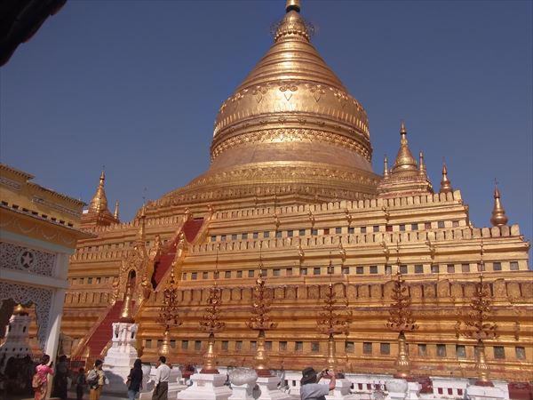 続いて金箔に覆われたシュエズィーゴオン・パゴダやティーローミンロー寺院などを見て廻ったが、11世紀当時の栄華が偲ばれる。