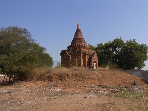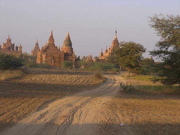 どの寺院もパゴダも簡素な日干し煉瓦で造られているが、地震も少ないところなので、1000年の時を経てもきちんと残っている。 王族などが建てた立派なものはその上に漆喰が塗られ、さらに金箔が施されている。 金箔は剥がれ落ちるので、何年かに一度は寄進によって張り替えが行われるそうで、どこも黄金色に輝いている。 何もない乾燥した大地にこうした仏教遺跡が四方八方に並ぶ様は、悠久の時を遡り、古に想いを馳せ、神秘的な世界に誘われる。