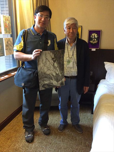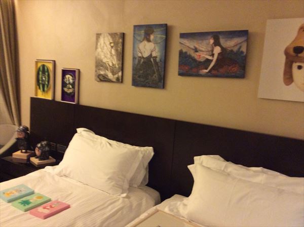 ●4月23日 お昼に台北到着。 今回も画廊で展覧会中とあって、私一人でやってきた。 零細企業は社長といえども一人で運搬、展示、撤収、営業としなくてはいけない。 もうすぐ70歳になろうというのに、我ながらよく働く。 ホテルに入り、早速展示開始。 通訳がなかなか決まらずヤキモキしたが、最初にお願いした女性が、なんとかやりくりして今日から来てくれることになった。 そうでなければ、私一人でやらなければならなかったので、まずはホッとした。 途中からは昨年の秋のフェアーで通訳をしてくれた緑くんが応援に駆けつけてくれた。 彼女は今回は日本の別の画廊の通訳をすることになっていて、私のところでやってもらえることができなかったのだが、 明日からの契約ということらしく、わざわざ私の方の手伝いに来てくれて、感謝感激である。 お陰で、総点数65点もあったにもかかわらず、7時にはほぼ終わってしまった。 緑くんと今回の通訳のアリスさんを夕食に誘ったが、二人とも都合が悪く、一人寂しくホテルのレストランでビュッフェスタイルの夕食を済ませた。 明日は3時からオープニングなので、ゆっくりできそうである。