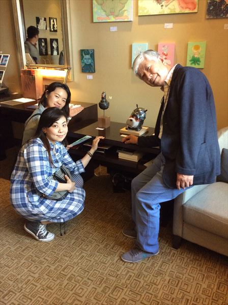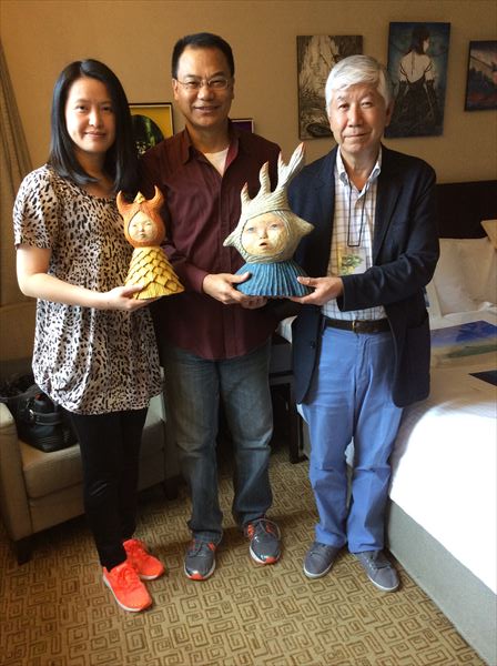 ●4月25日 今日明日とフェアーは一般公開。 大勢の人が詰め掛け、身動きとれない時もあって、ありがたいことなのだが、商談をするにはちょっと困りもの。 そんな中にはこんな人もやって来た。 夜はようやく通訳のアリスちゃんと一緒に台湾料理にありつけた。 台湾は9時頃にはお店を閉めてしまうところが多いが、ここは24時間営業の飲茶有名店。 行列ができていて、地元でも人気のお店のようだ。 頼んだ料理はどれも美味しく大満足。 ただ海老アレルギーの私にはいくつか海老が入っている料理があって、恐る恐る食べたが、案の定部屋に戻ると身体に発疹が。 旅行には常備している薬で事なきを得たが、海老が好きなだけに、この薬は欠かせない。 海老全部がダメなわけではなく、海老の背わたがあると症状が出るので、あるかないかを確認しながら食べることにしているが、小さい海老やミンチにしてあると背わたが確認出来ないので、蕁麻疹が出てしまう。 明日は元スタッフのKちゃんがやってくるので、夜は毎回お馴染みの夜市の鉄板料理に行く予定。 だんだんと台湾を実感してきた。 ●4月24日 3時から内覧会が始まる。 早速に昨年の秋のフェアーで中村萌を買ってくださったお客様が今度は予約の入っている1点を除いて、中村萌の残り4点をまとめ買いで、幸先よくスタート。 相変わらずの人気で、次々に来るお客様が中村は無いのかと聞かれる。 10月に昨年に続いて華山のトイショーに中村は招待されているので、その案内をさせていただいた。 その中村や佐藤温の作品が台湾の雑誌に多く取り上げられていて、台湾での人気が伺われる。