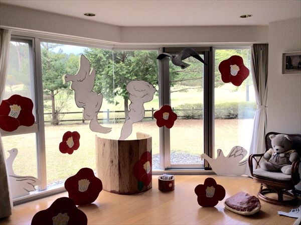 さすがに私も疲れが出て、ホテルでお茶を誘われたが、部屋に帰らせてもらって、忙しい1日を終えた。 ●5月8日 連休中ほとんど休みなく、昨日の夜に日本に帰ってきた。 海外に行き来する合間に、明日から個展をする台湾のフォトアーティスト王建揚君が日本での撮影も希望し、河口湖の我が家での撮影もあって、普段以上に忙しい毎日を過ごした。 ただ場所を提供するだけではなく、私もモデルに借り出される羽目になり、すっぽんぽんの女性を前にしたやけにニヤケタ写真が出来上がってしまった。 明日からの個展に出したいといわれたが、それだけは勘弁してもらって、海外のみの発表ということで、私の写真をどうしても見たいという方は海外に行っていただくしかない。 その顛末は、連休中の日記にも書かせていただいた。 画廊が休みの間も王君は画廊に詰めて、壁の一面に大きな絵を描き、それを背景に昨日も夜中まで撮影をしていた。 モデルを頼んだ知人の女性も、6時間掛けてボディペインティングが施され、何十回と背景の前でジャンプをさせられたりで、大変な思いをさせてしまった。 オープニングを終えた翌日曜日も、大きな民家を移築した逗子にある私の大学時代の友人邸で撮影をすることになり、私もここしばらく休みが取れそうにもない。 連休中の日記も合わせて29日分から順次アップさせていただく。 4月29日 河口湖で撮影開始。 富士山がくっきり見えるが、屋外で富士山バックにヌード撮影するわけにもいかず、部屋での撮影。 昨日から作っていた小道具で我が家は椿の花と鳥に囲まれた露天風呂に様変わり。 ヌードモデルを快く引き受けてくれたRさんだけでなく、私もモデルになれと言う。 上半身だけ脱げばいいということなので、仕方なく引き受け、露天風呂に私が浸かり、横から桶を持った女性が飛びながらお湯をかけるという設定。 私の目の前をスッポンポンのモデルさんが飛び跳ねるので、お互い最初は恥ずかしかったが、そのうち慣れてしまうとなんということはない。 モデルのR嬢は何十回とジャンプさせられ、足が痛くならないか心配になる。 OKが出るまで、2時間は裸で飛び跳ねていた。 昼から雲間に隠れていた富士山が再び姿を現したので、外に出て、肩だけ見せて王君やアシスタントをしてくれた造形大版画出身のTさんと一緒に全員でお風呂に入っている記念写真を撮って、撮影は無事終了。 この歳で上半身だけとはいえ、まさか写真のモデルになるとは努努思わなかった。 私の葬式の写真は、この写真を使ってもらおうか。