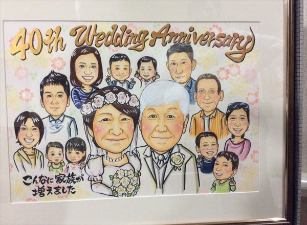 ●5月13日 子供達から結婚40周年記念の絵と旅行券が送られてきた。 子供達三家族に囲まれた私達二人のウエディング姿の絵で、それぞれの特徴をつかんだ何よりの贈り物である。 旅行券はいくつかの候補の中から、北海道のニドムリゾートを選ばせてもらった。 広大な大自然の中に佇むログハウスには一度泊まってみたいと思っていたので、いい機会となった。 天然温泉と広大な森の散策、バードウォッチング、そして敷地内にあるゴルフ場でのゴルフと二泊三日の子供たちのプレゼントを十分に楽しませてもらおうと思っている。 子供たち三家族もそれぞれ幸せな家庭を築いており、孫もそれぞれに2人づつ、男3人女3人とうまい具合に生んでくれて、私達夫婦にとってはこうしたことが何よりのプレゼントなのだが、更にこうして記念の旅をさせてもらうことが出来て、こんな嬉しいことはない。 結婚記念日と私の誕生日の間の6月の半ばに行ってこようと思っている。