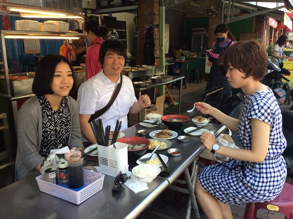 すでに気温は34度となっていて、真夏の暑さの中、車で台南の一番大きい寺院や台湾最西端の安平湾、台南名物の豆腐のデザート店などに連れて行ってもらった。 今日から展覧会が始まるのに、その時間を割いて、私たちへのもてなしを優先してくれるのには、ただただ恐縮である。