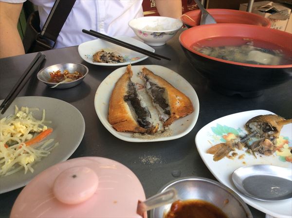 連休中の日記 5月5日続き 新幹線の台南駅を降りると、個展を開催してくれるダーフォンギャラリーのスタッフが車で迎えにきてくれていて、そのまま画廊に向う。 以前に訪ねた時とは違って、画廊は綺麗に改装されていて、白い壁に黒い岩淵の作品がよく似合う。 夜は海に近い海の味というお店でご馳走に。 旬の筍を台湾風に甘いマヨネーズをつけて食べると口の中に筍の柔らかな甘さが広がる。 柔らかいアワビや、酸っぱいヘチマのスープ、ヤブカンゾウの実の炒め物、台南の名産カラスミ入りの炒飯などなど台南の美味を味あわせて頂いた。