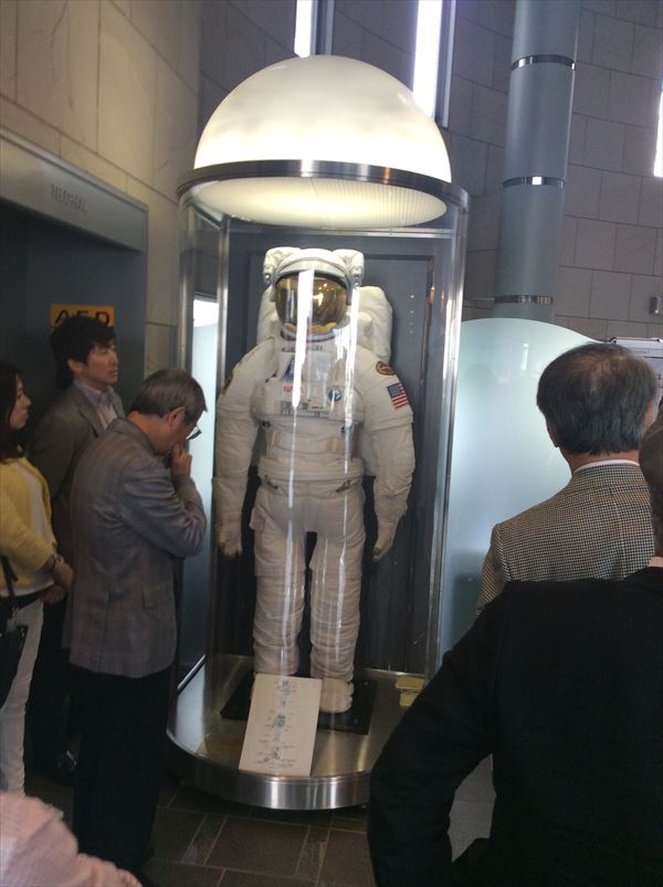 次に向かったのは、筑波にある宇宙センターで、広大な敷地の中にあるスペースドームで、国産の人工衛星の実物大のモデルや宇宙ステーションで日本人飛行士が活動する「きぼう」の実験棟、歴代のロケットが20分の1のサイズで展示されていて、ただただそのスケールの大きさに目を見張るばかりであった。 そこから宇宙飛行士養成エリアに移動し、その基礎訓練の実態や健康管理システムの施設を見せてもらった。 無重力の世界で活動するために過酷な訓練が必要なことが、この施設から窺い知ることが出来た。 朝7時半のバスに乗り、6時に帰ってくるというスケジュールでかなり疲れたが、日本の高度な科学技術の一端を見せてもらい、日本の力に勇気付けられるとともに、科学技術だけではなく、文化向上にも是非わが国が国力を注いで欲しいとの思いを強くした。