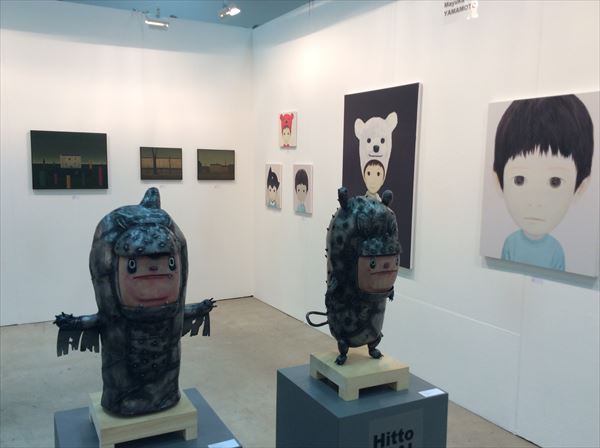 今年の10月もトイショーに招待してくれることになっていて、新しい中村萌のフィギュアーを発表するとともに、ブースで中村萌の新作を並べる。 今回は更に横田尚の作品も紹介してくれることになっていて、彼女もヤングアート台北にも初めての立体作品を出品した。 このフェアーでも中村は大人気で、20人くらいの人から新作の画像を送ってくれるように頼まれたり、トイショーの案内を欲しいという人も多く、さてどうなることやら。 フェアー全体でも立体作品に人気が集まっていて、台湾では立体に興味を持つ人が多いようだ。 終わって、初めて台湾に来た元スタッフのK君を連れて故宮美術館に行く。 美術館は中国人の団体客で溢れかえっていて、展示品を肩越しにしか見ることが出来ない。 私は何度か来ているが、彼女は初めてなのに間近で名品を見ることが出来ない。 私が6時過ぎの飛行機で帰国予定なので、2時間ほどで切り上げることにして、彼女は次の機会にゆっくり見てもらうことにした。 東京には夜遅くについて、明日は5月に個展のある王君が日本でも撮影したいとのことなので、河口湖の私の家に案内することにしている。 29日一日を富士山を背景に撮影をする予定で、私は翌日早朝に山本麻友香展のオープニングに合わせて釜山に出かけるので、できるだけ早くに終わって帰りたいのだが。 釜山から帰った翌々日には今度は再び台湾に戻り、台南の画廊の岩淵華林の個展のオープニングに行く予定で、連休も関係無しの毎日が続く。 そんな訳で、日記もしばらくアップできないが、台湾から戻ったら山本展や岩淵展の様子をお知らせする。 ●4月26日 あっという間に最終日。 日本の画廊は昨日まではだいぶ苦戦していて、私のところも例年に比べると今ひとつ。 昨年まで日本の画廊の売り上げが良かったこともあって、今回は35画廊が申し込み、セレクションでな28画廊が参加している。 継続して出ている画廊はそれなりにお客様を持っているが、初参加の画廊は次に期待といったところだろうか。 それでも最後とあって、お決まりの値切り合戦の結果、そこそこの成果は挙げられたのでは。