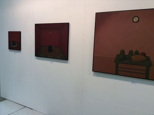 ●5月12日 GTUのうじまりも4回目の個展となる。 今回は儚げだが爽やかで美しい色彩に彩られた作品が並ぶ。 岩絵の具を使っているとは思えないうじまり独自の色使いだ。 先日軽井沢で見たオトニールの立体作品と通じるような球体の集合がリズミカルに音を奏でている。 観る人の心を軽やかにしてくれるような展覧会で、5月の新緑に相応しい展覧会となった。