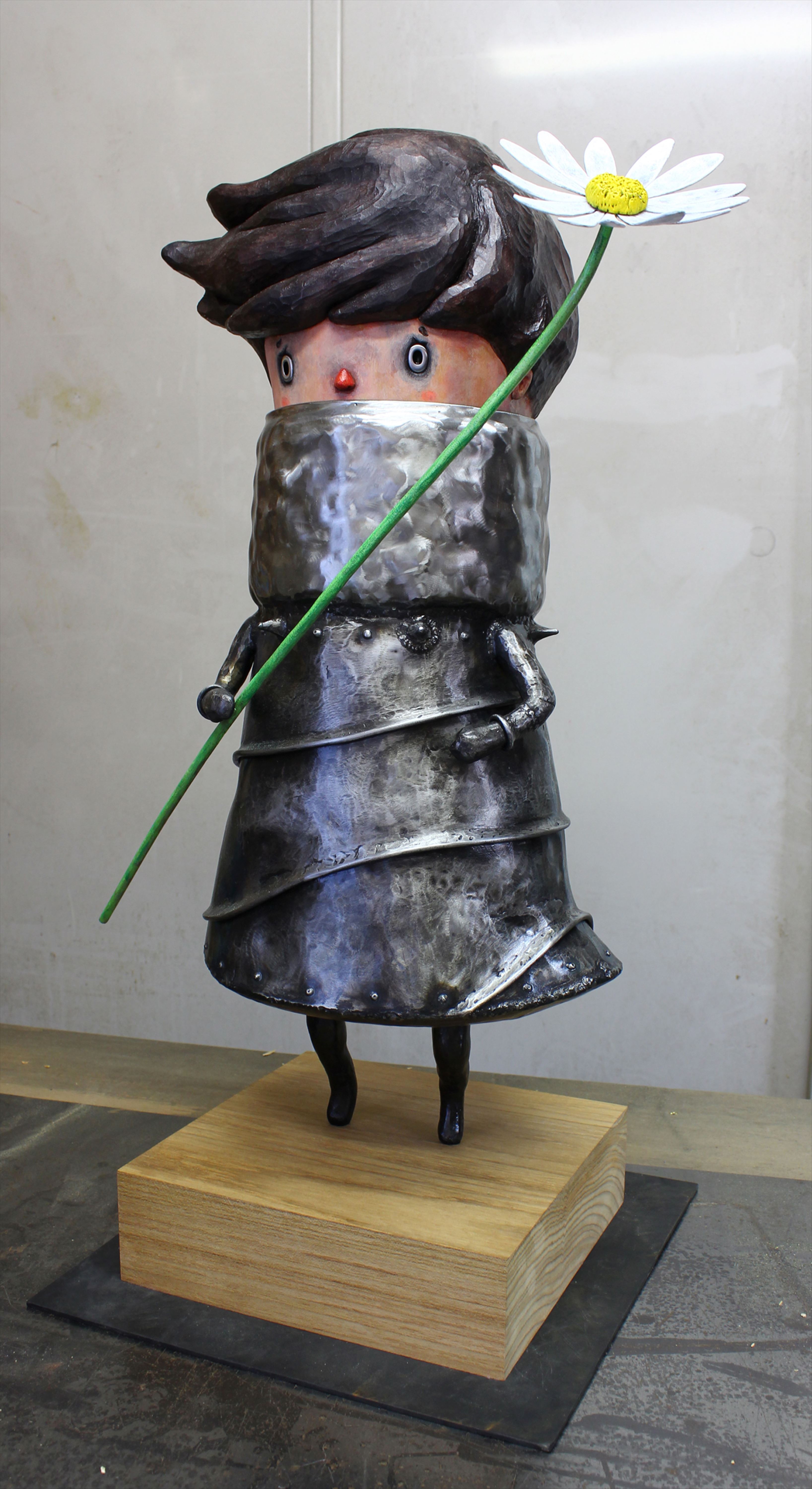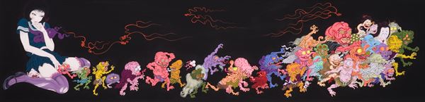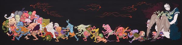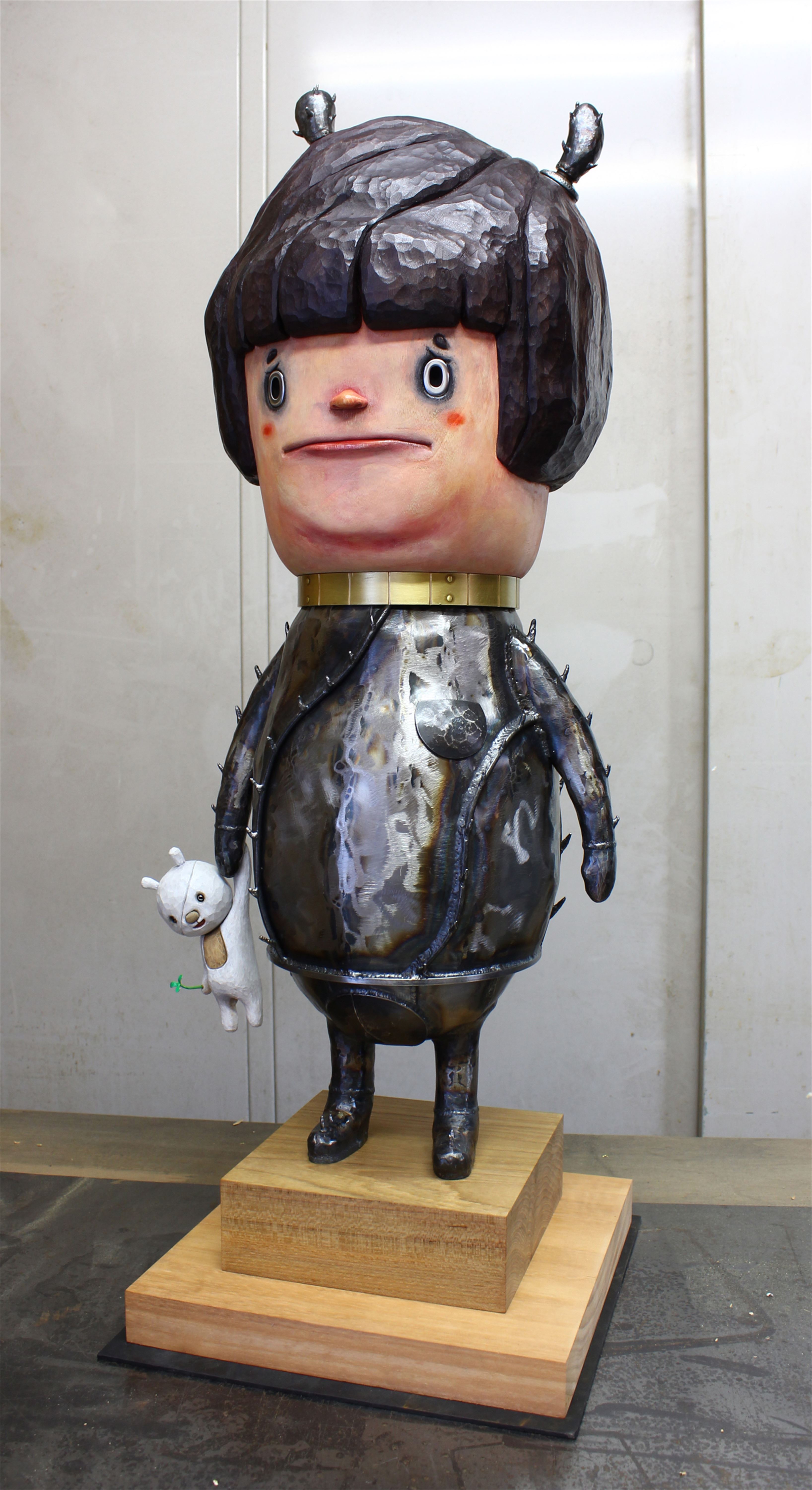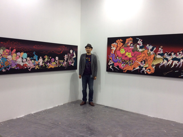 ●2月12日 昨日は久しぶりに映画館で映画を見た。 先日ソウルに行ったときに最初の部分を見ているうちに空港に飛行機が到着してしまい、消化不良で気になっていた映画だったので、見に行くことにした次第である。 「オッデセイ」という映画で、火星に取り残された宇宙飛行士が困難を乗り越え地球に帰還するSF映画である。 SFとか気味悪い怪獣とかが出てくる映画は苦手で、印象に残っているのは「2001年宇宙の旅」ぐらいであるが、偶々機内で見て興味を持った。 3Dということで眼鏡を渡され見ることになった。 昔子供の頃はは立体映画と言って、青と赤のセロハンを張った陳腐なメガネをかけて見たもので、西部劇でインディアンの馬や矢が飛んできて思わずのけぞったりして興奮したものである。 今や3Dになるとその臨場感は昔とは大違いで、技術の進歩には驚かされるものがある。 聞くところによると、今や椅子が揺れたり、匂いがしたり、水しぶきが飛んできたりと、何もそこまでしなくてもという映画もあるらしい。 どこで撮影したのか、広漠たる砂漠と岩山が広がる様は、私たちが想像する火星そのもので、そのスケールの大きさには圧倒される。 宇宙船内の宇宙飛行士が浮遊しながら移動する場面も、まさしく宇宙空間ならではの映像で、ハリウッド映画のお金のかけ方は半端でないことを実感させられる。 テレビやビデオの映画に慣らされている私には、劇場ならではの臨場感や音響は比べ物にならないほどの迫力がある。 しばらくは劇場での映画鑑賞にはまりそうである。 ●2月10日 来月からいよいよ海外での発表が始まり、待ちに待った新作が次々に出来上がってきた。 3月の香港のフェアー・アートセントラルには森口裕二の大作「魑魅魍魎」2枚組が出品される。 浮世絵の国芳、芳年や河鍋暁斎等の妖怪図をイメージして、新たに森口独自の妖怪図が生まれた。 制作に半年を要し、ようやく昨日作品が運ばれてきた。 これに昨年青森県立美術館の「化け物」展に出品した「かいじゅうと21人の乙女」などを加えて5点の大作が展示される。 村上隆の五百羅漢図にも通じる日本独自の文化から生まれた森口作品は香港の話題をさらうことは間違いないだろう。 次に同じ時期に香港で個展が開催される山本麻友香の新作も到着し、昨日香港に向けて他の作品とともに送り出した。 以前に香港で個展が開かれたことがあったが、その時は韓国の大手画廊の香港支店で、今回は地元画廊による初めての発表となる。 今年は他にソウル、ニューヨークと個展が予定されていて、彼女には申し訳ないが、ゆっくりする暇がない。 次に釜山で展覧会をする浅井飛人の新作を紹介する。 従来の鍛金を主体とした立体作品から今回は鑿肌の残る木彫と鍛金による新たな展開の作品が生まれた。 一皮むけたというか、丁寧すぎる仕事から木彫部分を大きく加えることで、手の感触を感じさせる温もりのある作品が生まれた。 先日も彼の大きい作品がアラブ首長国連邦のお客様に納まったり、ジャカルタの画廊での発表など、彼も海外に大きく羽ばたきつつある。