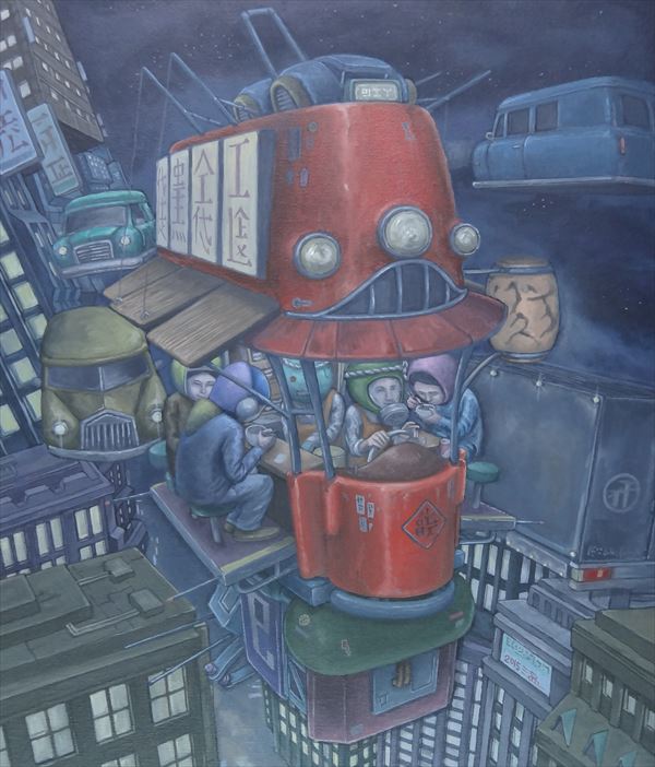 ●2月15日 > 昨日とは一転凍えるような寒さで、今にも雪が降りそう。 昨日は部屋の窓を開けていてもいいくらいの暖かさだっただけに、余計に寒さを感じる。 そんな中、お客様に先日の堀込展とコレクション展の納品で千葉に出かける。 いつも千葉のお客様のところに行くときは悪天候で、ゴルフに次いで雨に祟られる。 コレクション展も会期半ばを過ぎ、旧作が珍しいのか10点近くが売約となり、多くのお客様からも偶にはこういう企画もやってほしいと言われた。 作家さんの個展やグループ展が絶え間なく続き、こうした作品を見ていただく機会もなく、30年ぶりに展示した作品もある。 私も懐かしいが、お客様にとっても初期作品を知る上でもいい機会となったようだ。 また機会があれば倉庫から引っ張り出して、見ていだこうと思っている。 ●2月14日 昨日は台南のお客様が奥さんと9か月になる赤ちゃんを連れて画廊にやってきた。 先日の地震は私たちが思うほどには大したことがなかったようだが、偶々違法建築のビルが倒壊して、多くの死者が出たので、大騒ぎになったようだ。 お正月のバカンスでやってきたそうで、軽井沢のプリンスホテルに併設するスキー場でスキーを楽しんだり、都内のレストランの名店でグルメ三昧をしてきたみたいだ。 予約していただいている山本麻友香の作品を確認していただき、持って帰ってもらうつもりだったが、赤ちゃんの荷物と作品が大きいのとで、改めてヤングアート台北の時に送ることになった。 若いお客様だが、今までも多くの私どもの作家の作品を購入してもらっていて、私どもにとっては大切なお客様の一人である。 グルメ三昧のお客様には申し訳ないが、近くの「権八」に案内し、刺身や焼き鳥、お蕎麦などの庶民の味を味わっていただいた。 台湾に行くとその倍返しのご馳走が待っている。 ●2月13日 上海の画廊で4月に佐藤温の個展が開かれる。 初の絵画展である。 高島屋Xで個展を開いた折に美術部の方から紹介され、私どもで扱わせてもらうことになり、個展を2度開催している。 個展の折に、上海の美術館の代理人をしているKさんが大作をはじめ何点か購入してもらい、更には昨年の台湾のフェアーでも上海の有名コレクターに買っていただいたりで、何かと上海に縁があったのだが、今回上海の画廊の目に留まり、個展の運びとなった。 アニメ風の画風と廃墟のようなビルの中での様々な人生模様や不思議な乗り物が、見る人の想像力をかき立てる。 香港のフェアーで個展予定の森口裕二も昭和レトロの懐かしい情景をテーマに取り入れているが、佐藤もまた古き良き時代を彷彿とさせる情景を描いていて、こうした傾向が上海の人たちには受け入れられるのだろう。 以前上海を訪ねた折に、そう言えば旧市街の建物は戦前のままの建物が多く、リニューアルする場合でも外側はそのままにして、中だけを改装しなくてはいけないと聞いた。 川を挟んだ対岸には未来都市のような高層ビルが立ち並び、旧市街との対比が何とも印象深かった。 そんなこともあってノスタルジックな気分にさせるのだろうか、佐藤温の作品は上海で人気があるようだ。