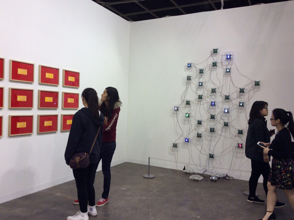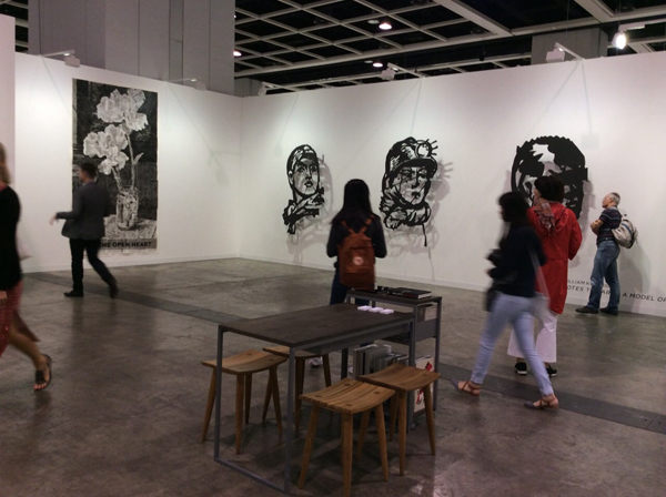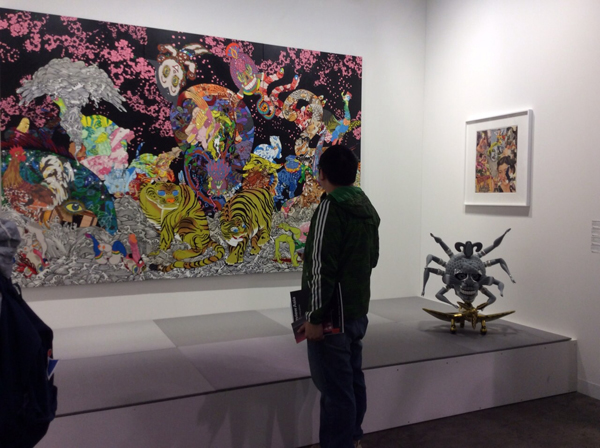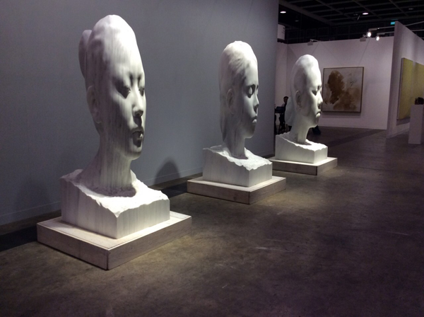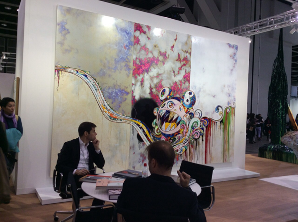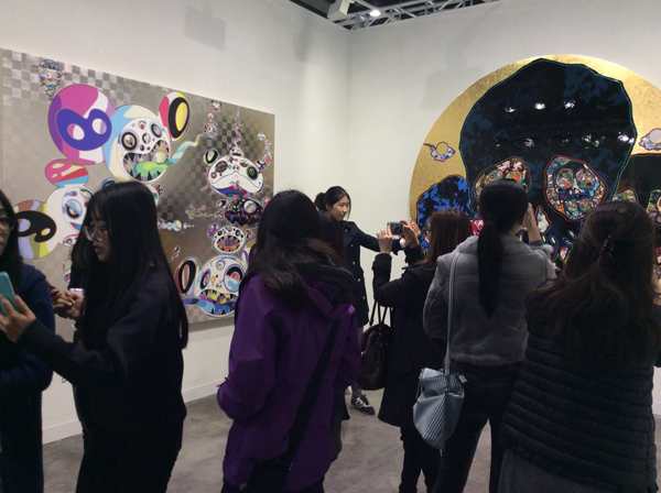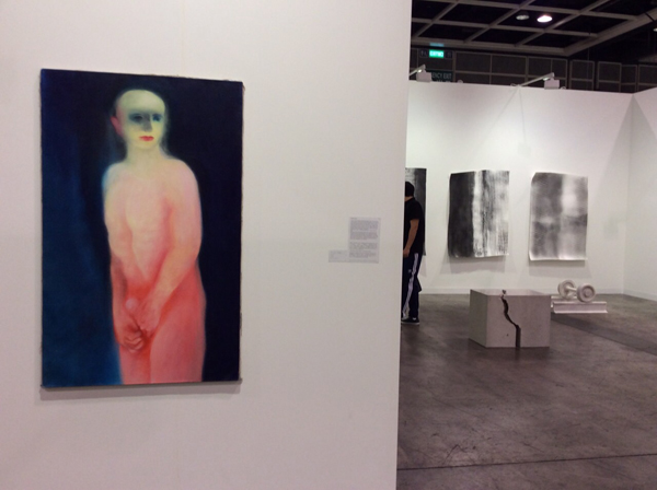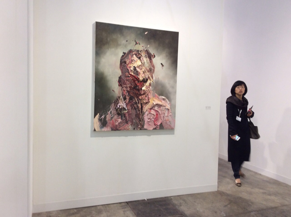 ●3月25日 飛行機の出発時間が3時間半ほど遅れた上に、さらに発着がかなり遅れて、1時半過ぎに羽田に到着。 ただただ眠い。 タクシーは香港同様に中々来ずに長蛇の列、仕方なくリムジンバスの乗り場に向かうがこれは正解。 それでも20分ほど待ってようやく出発。 こんなに遅くなっても航空会社は何の対応もしてくれず、機内のアナウンスでもお詫びの言葉ひとつない。 キャセイ航空だからだろうか、日本の航空会社だったらどんな対応をするのだろう。 深夜のタクシーで遠くまで行く人はかなりの出費になるはずなのだが、その保証もないようだ。 電車だと振替輸送などで別の電車やバスに無料で乗ることができるのだが、そんなこともしないのだろうか。 以前に突然理由もなく飛行機が飛ばなくなったことがあったが、その時はホテルを用意してくれて、朝一番の飛行機に振替てくれたことがあったが、今はそうしたサービスもないのだろうか。 どちらにしても香港行きはあまりいいことがない。 ●3月24A日 空港に行くには1時間ほど時間があるので、ホテルのすぐそばにあるアートバーゼル会場に行って、さわりだけでも見ようと出かけた。 入場時間がまだなので待っていると、携帯にメールが。 航空会社からで出発が3時間半ほど遅れるとの事。 その時間だと今日中には到着しない事になる。 何かの間違いかもしれないので、画廊から確かめてもらうと間違いないらしい。 着いたら係員がいて、バスの手配などしてくれるとの事で何とか帰ることはできそうだ。 そんなこともあってすっかり時間が空いてしまったので、会場に戻らずにゆっくりとバーゼルを見学する事にした。 バーゼルはセントラルに比べ、そのスケールもクォリティーも圧倒的で、億単位の作品が所狭しと並んでいる。 二つのフロアーがあり、一つが著名な作家などを展示するフロアー、もう一つがそれぞれの画廊のプライマリーの作家を紹介するフロアーとなっている。 セントラルのブースフィーも広さの割には高いと思ったが、バーゼルは最小ブースでも約400万円かかるそうで 、私のところの作家ではとても間に合わない。 とにかく会場が広くて、3時間ではとても廻りきれない。 最初のうちは丹念に見ていたが、最後の方はどうでもよくなってきた。 日本からも15画廊ほどがこちらに参加しているが、そのうちの数軒はおそらく文化庁の助成金500万円が出ているに違いない。 私も去年申請したが却下。 くたくたになって外に出るとチケットを買う人たちで延々長蛇の列。 中のチケット売り場だけではなく、外の車寄せまで並んでいる。 すでに会場内もひしめき合っていて、どれだけの人が来ているのだろう。 まずは遅い昼食をとって、それから空港に向かう事にする。 無事に家に帰れるだろうか。 少し多いが、気になった作品を紹介する。 何せモランディーがずらっとならんでいたり、デクーニングがあったり、ポロックが何気なく並んでいたりで、こんな作品誰が買うんだろうか。 ある画廊の人によるとスイスのバーゼルを抜いてしまう勢いだそうだ。 ただ聞いてみると商談は今ひとつだそうで、ここで売れなければセントラルで売れるはずがない。 ●3月24日 毎日雨ばかり、その上未だ成果が出ていず、重苦しいまま私は一足早く日本位帰る事に。 全体に見てもほとんど売約の印がなく、中国パワーも衰えてきたのだろうか。 アートバーゼルの方も聞いた話では今一つのようだ。 バーゼルには行くつもりでいたが、結局時間が取れず、行かずじまいで帰ることになり、実際の状況は見ていないのでわからない。 昨日の夜は山本麻友香の個展を開催しているアートプロジェクトギャラリーをセントラルにも出展しているオーナーの案内で訪ねることにした。 市内の山の中腹にある画廊で、昔のポリスの宿舎があった建物を そのまま起業したブティック、アクセサリー、諸々の雑貨店などに貸している。 日本で言えば銀座の奥野ビルみたいなところである。 ギャラリーでは山本麻友香の作品を狭い空間にバランスよく飾ってあり、いつも大きな空間ばかりで彼女の作品を見ていただけに、こういう展示もありかなと思う。 ただ残念なことに、ここでもまだ成果は出ていず、現状の厳しさをひしひしと感じる。 オーナーの招きで夕食は近くにある洒落たレストランに案内された。 キュージーヌ風の中華料理といったところだろうか、料理も食器も垢抜けていて、若者が大勢きていることでもそのセンスの良さがうかがえる。 料理はどれも美味しいが、中でもハンバーガー風角煮は絶品。 毎日こうして中華料理を食べているのだが、味付け、種類も様々で飽きることがない。 今までのところ充実しているのは食事だけのようだ。 香港ではタクシーを拾うのが至難の技、なかなかタクシーはやって来ず、空車が来ても乗車拒否なのか行き過ぎてしまう。 結局は雨の中を歩くことになり、昨夜もギャラリーまでは30分はかかると言われ、急