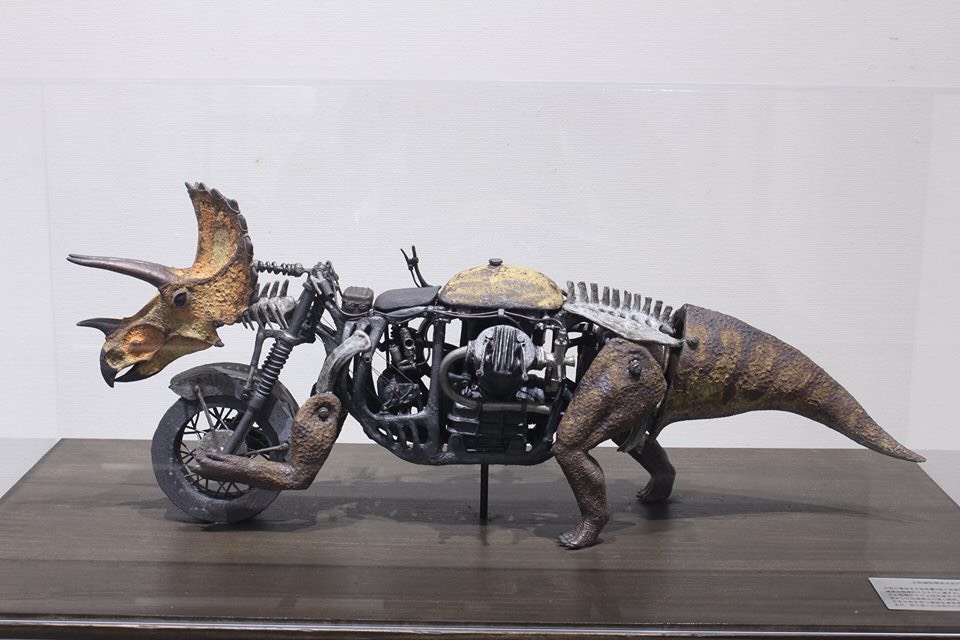 こちらも超絶技法で、粘土を手で捏ね、細かいパーツで、カブトムシ、クジラ、テラノザウルスなどの恐竜とオートバイや自動車、飛行機などをリアルに再現していく。