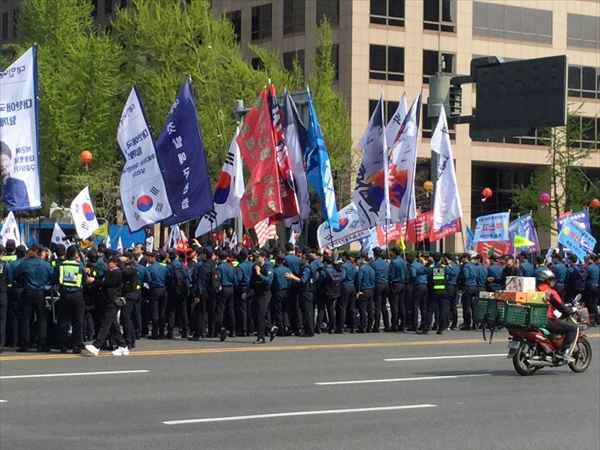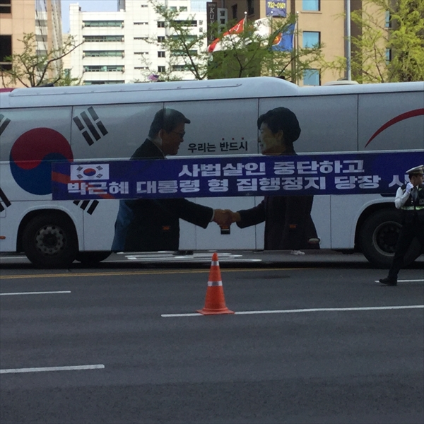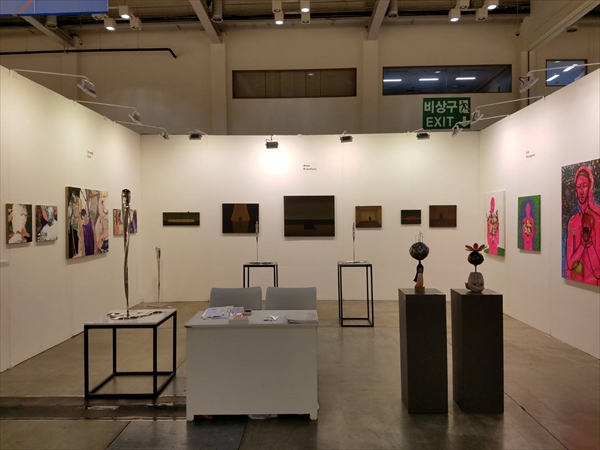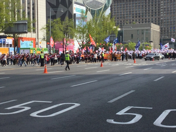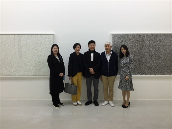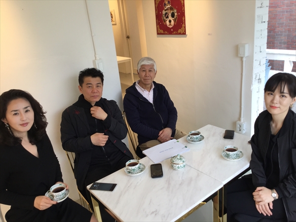 ●4月21日 Choice Art 前日のテヒョクさんのレセプション以外は今回は予定がなかったのだが、昼は昨日レセプションにみえたSPギャラリーの招待で素敵なイタリアンレストランで昼食をご一緒させていただいた。 SPさんもテヒョクさんの作品には興味があり、シカゴのフェアに出品したい意向を持っているのだが、 厄介なことに朝鮮日報との契約で、向こう3年は他所で発表をしてはいけないということになっていて、彼も悩むところである。 ソウルでの発表はそういう契約なら仕方ないが、海外での発表ならいいと思うのだが。 終えて、これも昨日のパーティーと二次会に来ていたchoice artのオーナーのソフィアさんの招きで昨年オープンした画廊を訪ねることにした。 泊まっているホテルまでSPさんに送ってもらい、ホテルにはソフィさんが向かえにきてくれることになっていたのだが、ホテルの前の大通りが大変なことになっていた。 保守系の人たちの大規模な反政府デモに遭遇してしまった。 機動隊の数も物凄い。 というわけで両方の車がホテルにたどり着けず、途中で降りて、またデモの影響のないところまで歩いて向かうことになった。 何とかソフィアさんの画廊に到着。 美人でノーブルなソフィアさんに相応しい瀟洒な画廊で、入口の両脇には桜と紅葉の木が植えられている。 彼女は15年アメリカにいてアートを勉強し、昨年画廊をオープンしたばかりだが、画廊では今韓国メディアで注目のキムジヒの個展が開催された。 この画廊の雰囲気にぴったりの作家で、韓国だけでなく、台湾や香港でも話題になりそうなアーティストである。 夜は初めてお会いしたにもかかわらず、美味しいお肉をご馳走になり、その後もグランドハイアットホテルでお茶をご一緒させていただいた。 よく日本には来るというが、あまりにセレブすぎて、日本に来られた時に安い寿司屋や天ぷら屋にお連れするのが気がひけるのだが。 ●4月20日 ホテル近くの徳寿宮を散策。 初めて韓国で開かれたアートフェアに招待された折の開催場所が確かここだった。 仮説のテント小屋のようなところだった記憶があるが、当時は初めて訪れた韓国で周りの景色も見る余裕がなかったのか、はっきりとは覚えていないが。 宮殿の目の前にソウル市庁舎があるが、市庁舎の奇抜なデザインが何ともそぐわない。 横に立つ石造りの旧市庁舎の方がよほどいいように思うのだが。 京都駅の軍艦のような建物も同じである。 古都にはふさわしくない何とも奇抜なデザインにはがっかりさせられる。 昼からはお世話になっているSPギャラリーのオーナーと食事をして帰ろうとすると、ホテルの前の大きな通りが騒然としている。 物凄い数のデモ隊が韓国国旗を掲げて行進をしている。 それに対して機動隊なのだろうか、大勢の隊員がデモ隊と小競り合いをしたり、規制された道路からデモ隊が広がらないように列をなしている。 どうやら現政権に対する抗議デモで、拘置されている元パク大統領の写真も掲げられ、釈放を要求しているようだ。 この行進に阻まれ、昨日初めて展覧会場でお会いして、私を画廊に案内してくれることになっているオーナーのチョイさんも車がホテルに向かえない。 行進を避けて歩いてチョイさんの車に向かい、何とか画廊にたどり着くことができた。 韓国では何度かこうした規模の大きいデモに出会うことがある。 以前にもデモのために道路が封鎖され、約束の時間に2時間も遅れてしまったことがあった。 現政権も北朝鮮への対応や景気後退、そして繰り返される前政権や財閥系への圧力に対する保守派の不平不満がたまっているのだろう。 ●4月19日 キム・テヒョク個展 早朝の飛行機でソウルへ。 今日から朝鮮日報本社にあるギャラリーで私どもがアートフェアで紹介しているキム・テヒョクの展覧会が始まった。 広い会場に白と黒の世界が広がる。 テグスを縦横に張り巡らせ、そのテグスに絵の具を引っ掛けるような彼独特の技法で制作している。 今までは点の作品が多かったが、今回は新たにテグス全体に絵の具を重ねる面の作品を発表した。 東京芸大大学院で野田哲也氏のもとで版画を学び、卒業後芸大で助手を務めた後、韓国ではこうした技法で制作を続けている。 会場には私どもで3年ほどアルバイトをしてくれたキム・ソヒや長年お世話になっているSPギャラリーのオーナーをはじめ多くの人が詰めかけた。 レセプション終えて、二次会ではサムギョプル(豚カルビ)で大いに盛り上がった。 ●4月18日 「心の力」 高校までは凝念というのを朝の授業前にやらされていた。 坐禅のように足は組まないが椅子に座って指を組み少しの間瞑想をするのだが、学生時代は面倒くせーと思っていた。 それでも習い性というのはすごいもので、大学受験の折に、クラスメート何人かとと一緒にテスト受けたのだが、答案用紙が配られる前の緊張の時間に私は自然に凝念をして心を落ち着かせていた。 すると他のクラスメート
